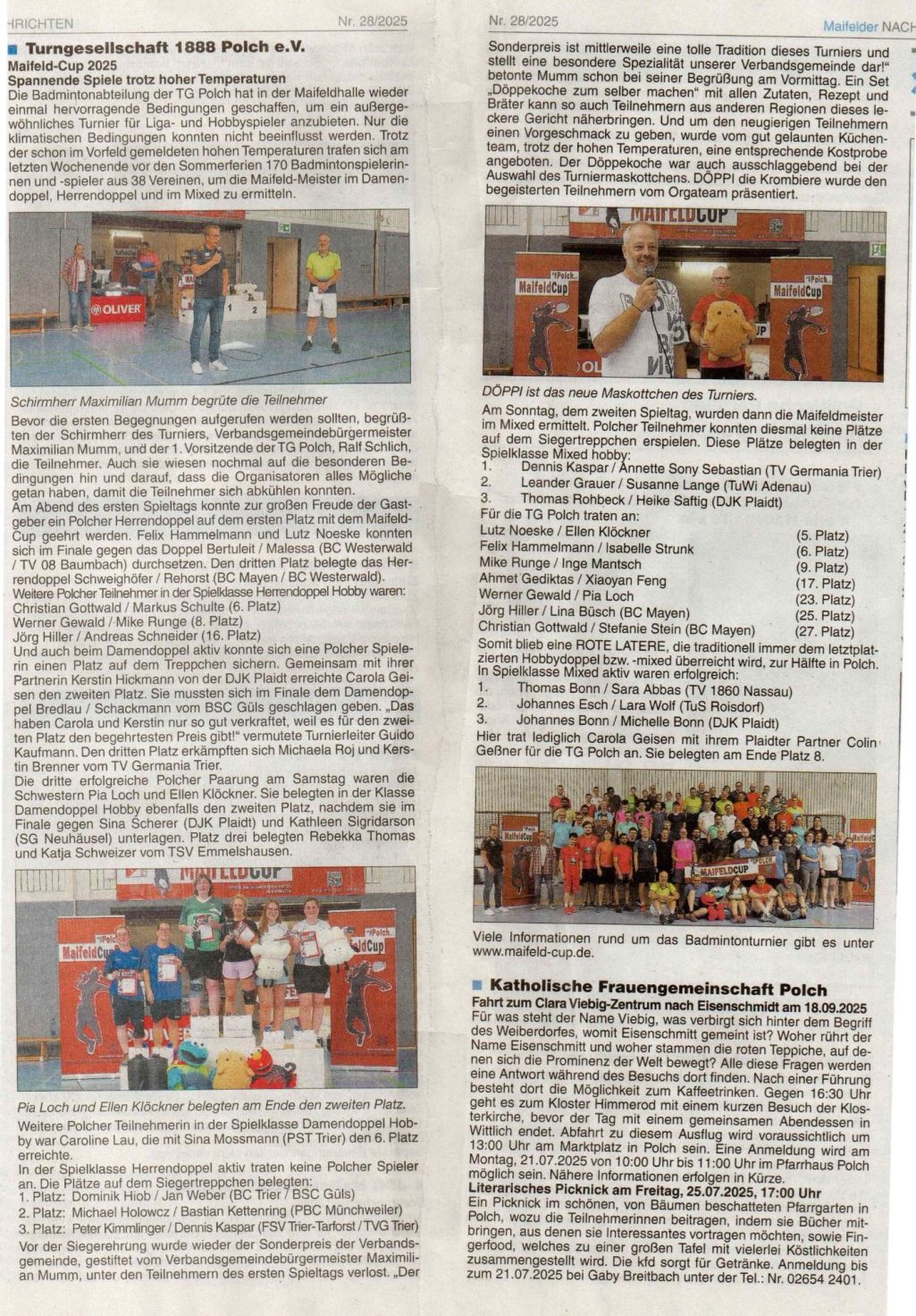 Bei der 3. Auflage des Maifeld-Cups in Polch war die Maifeldhalle an beiden Turniertagen hervorragend besucht. Spannende Spiele und und gute Stimmung prägten das Turnier 2025.